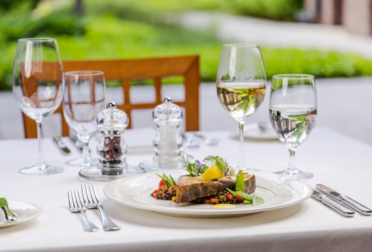 Gästen, die sich für die Vollpension-Variante im Restaurant Oranżeria entscheiden, bieten wir an, das Abendessen im Restaurant Romantyczna zu genießen. Die Rechnung für das Abendessen wird von dem Vollpensionspaket um einen Betrag von 185 PLN reduziert (gilt nicht für die Getränkerechnung).